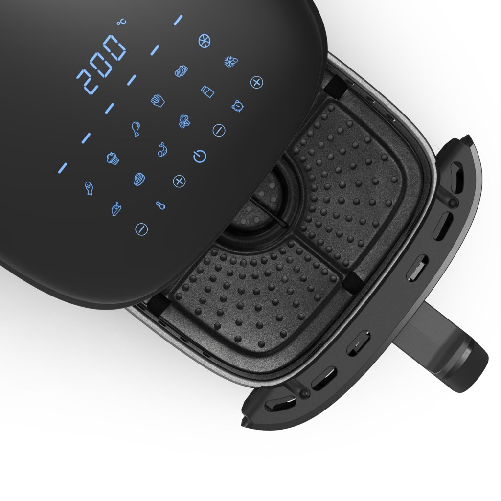 The incredible speed of cooking is helped not only by the fast hot-air cooking principle itself, but also by the 12 preset programmes, where you can prepare food by simply touching one of the 12 recipes on the touch control panel. The fryer takes care of the rest - it sets the recommended time and temperature. The ultimate in convenience is the ability to set the time and temperature individually - even with presets, you can change the time or temperature to suit your culinary experience.