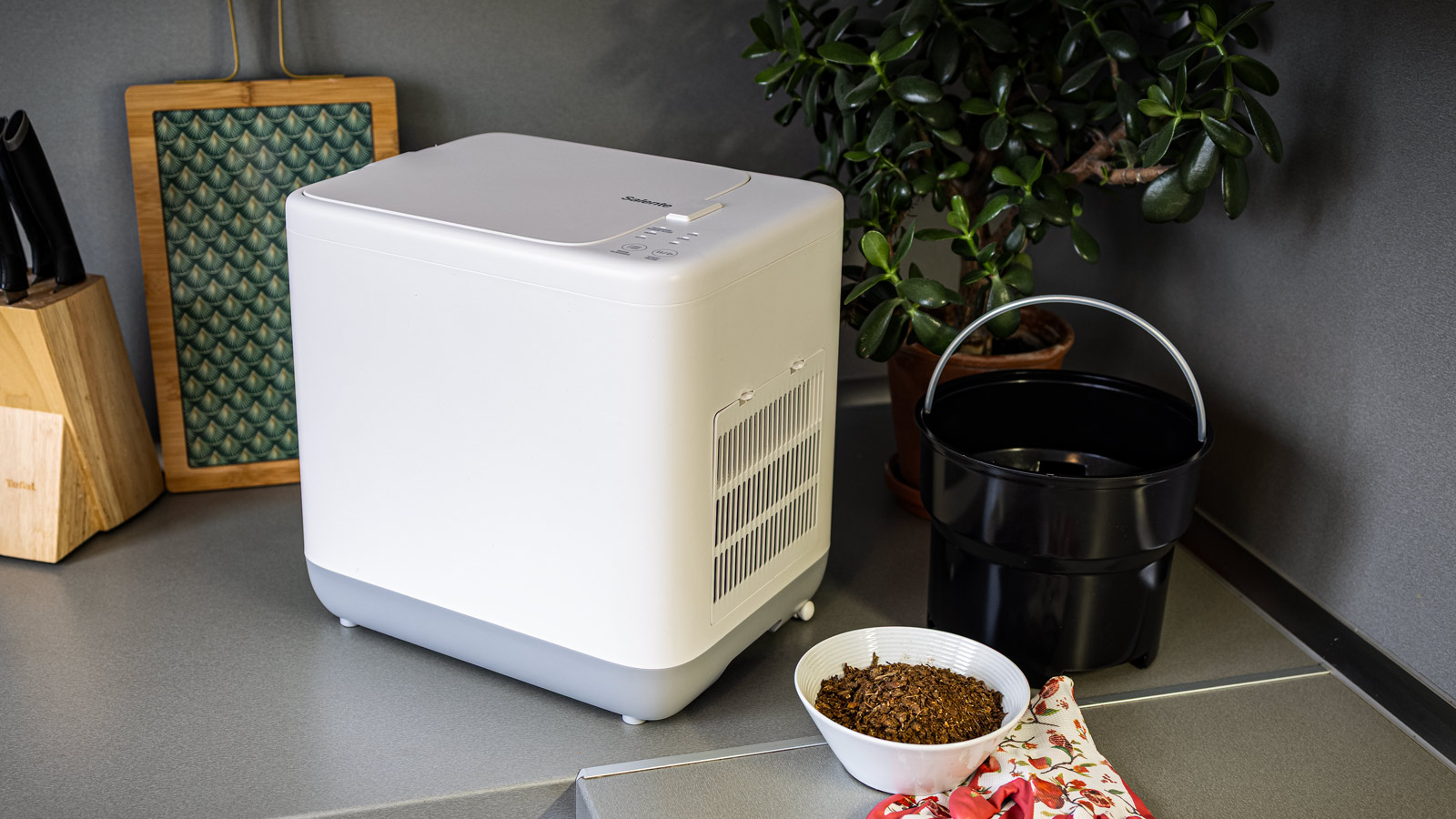 Given the dimensions of 33 × 25.7 × 33.4 cm (with a weight of 7.8 kg), the device fits into almost any kitchen without interfering with normal activities. Its noise level is only 50 dB, which is comparable to normal office noise - so the ecological processing of biowaste does not disturb neighbours or sleeping children.