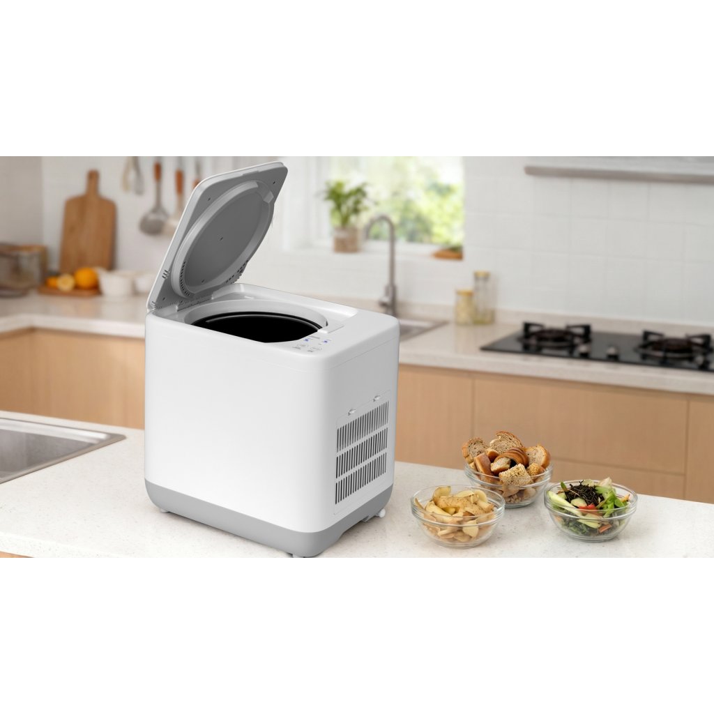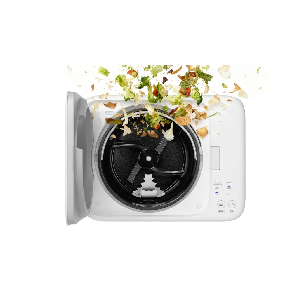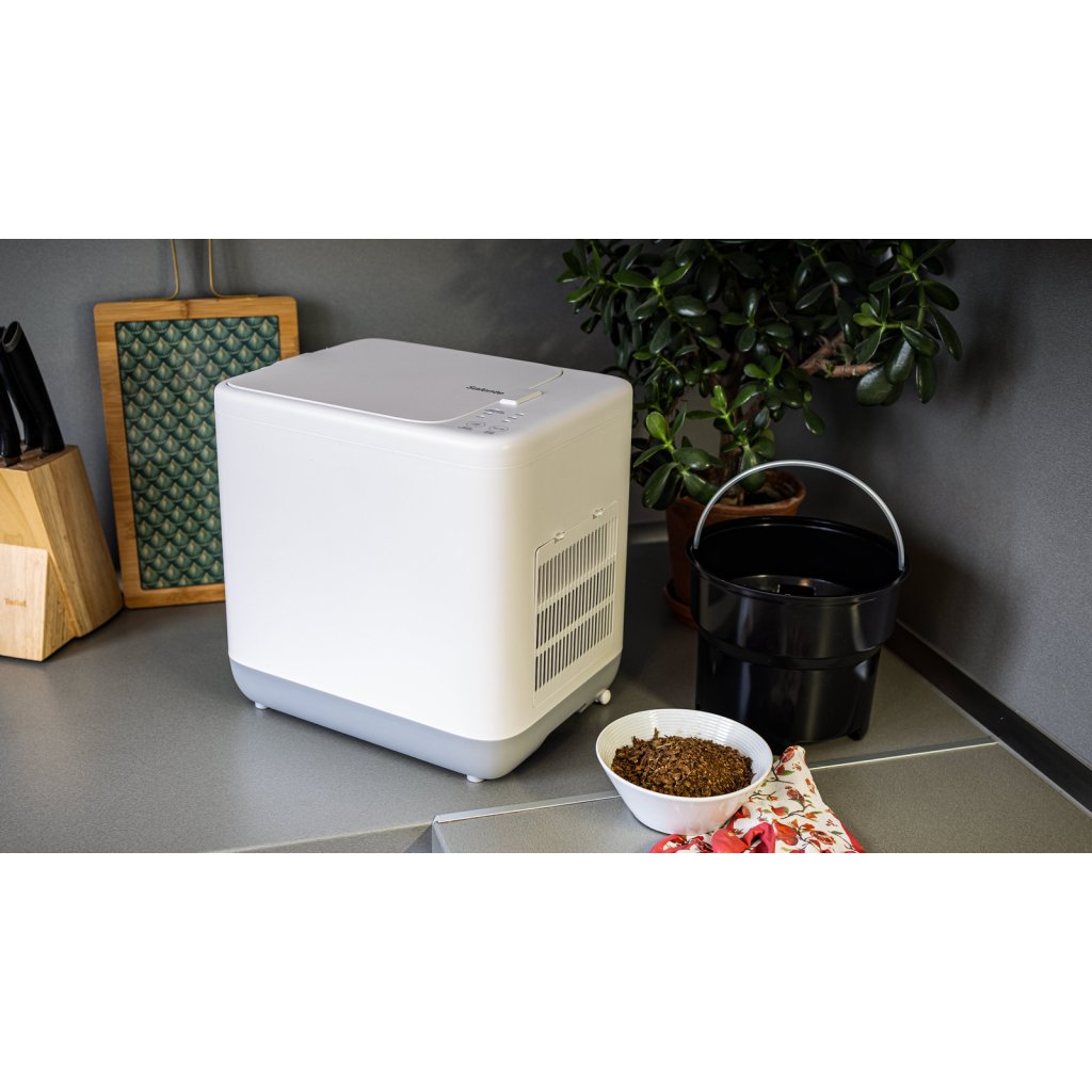 Given the dimensions of 33 × 25.7 × 33.4 cm (with a weight of 7.8 kg), the device fits into almost any kitchen without interfering with normal activities. Its noise level is only 50 dB, which is comparable to normal office noise - so the ecological processing of biowaste does not disturb neighbours or sleeping children.