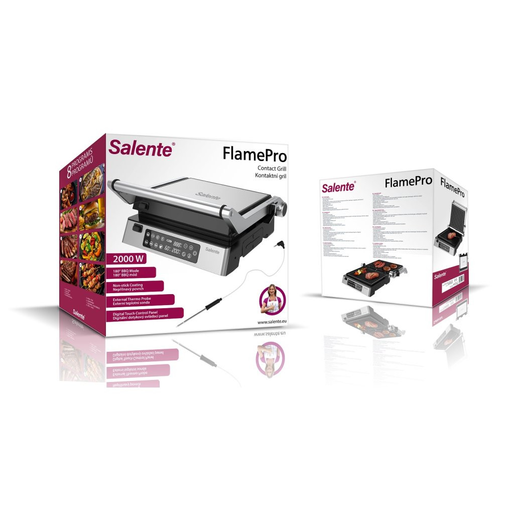 The Salente FlamePro electric grill grills automatically and, thanks to the special non-stick coating on both grill plates, even without the need to add oil. Unlike charcoal grills, it produces no smoke or odour on its own, making it an ideal choice for balconies and loggias of residential buildings where you no longer have to worry about smoke rising to the upper floors bothering the neighbours. It is also perfectly suited for use indoors where, thanks to its compatible size, you can grill directly on the kitchen worktop. You will no longer depend only on the beautiful sunny weather and the season - with the Salente FlamePro you can now grill even in the rain or in winter.