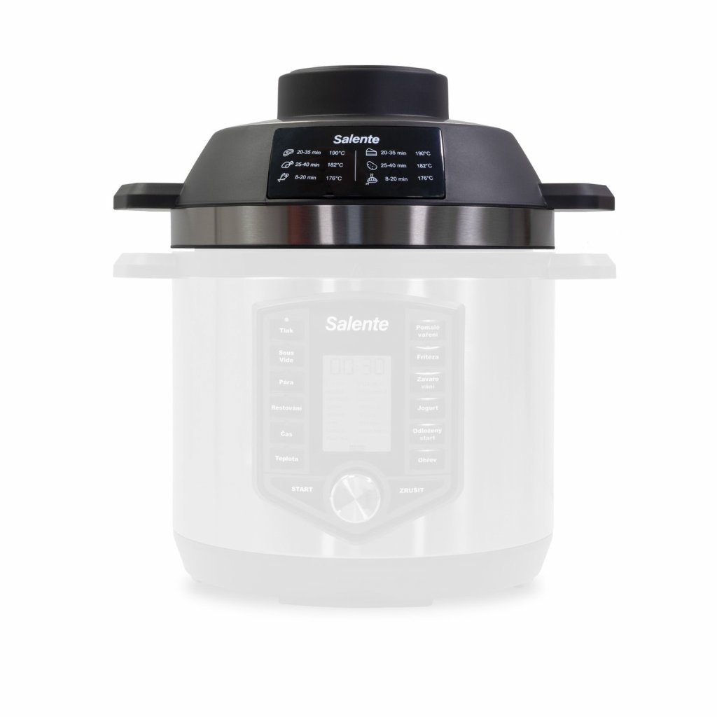 By purchasing the Friteo II hot air oven to Cuco II will result in the Ario II. This fryer has 10 preset programs: Beef, pork, ribs, poultry, fish, legumes, vegetables, potatoes/fries, drying program and custom temperature and time setting program.