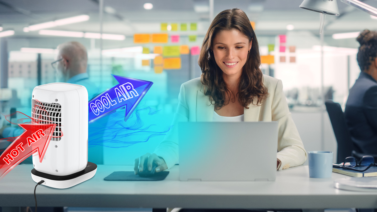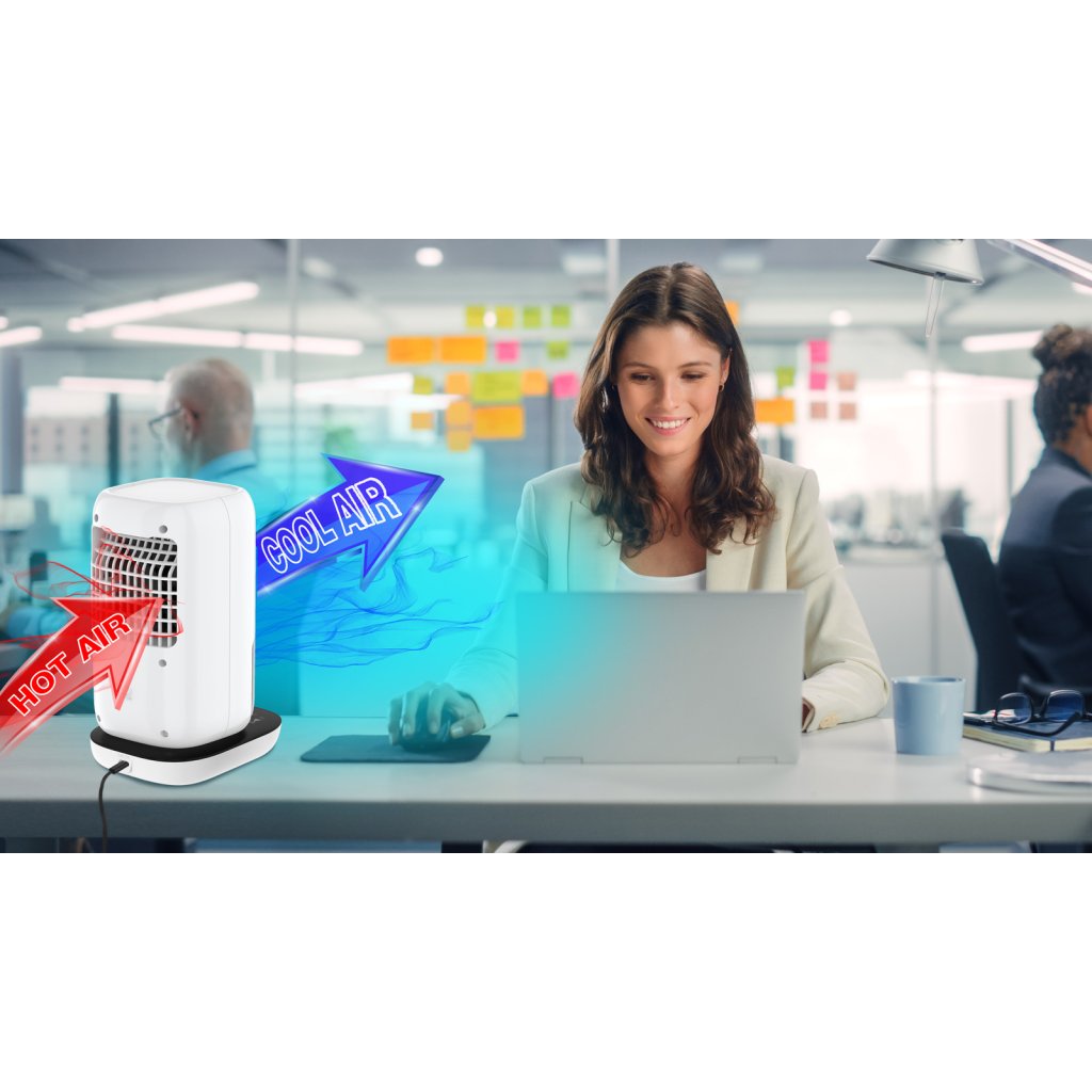 Thanks to its compact dimensions not exceeding 24 cm, it is predestined for use especially in offices and homes as an individual device for cooling the air with a focus on a specific person creating a personal comfort zone. You can keep it on your desk next to your phone or computer, as well as on your kitchen counter when cooking or exercising at home.