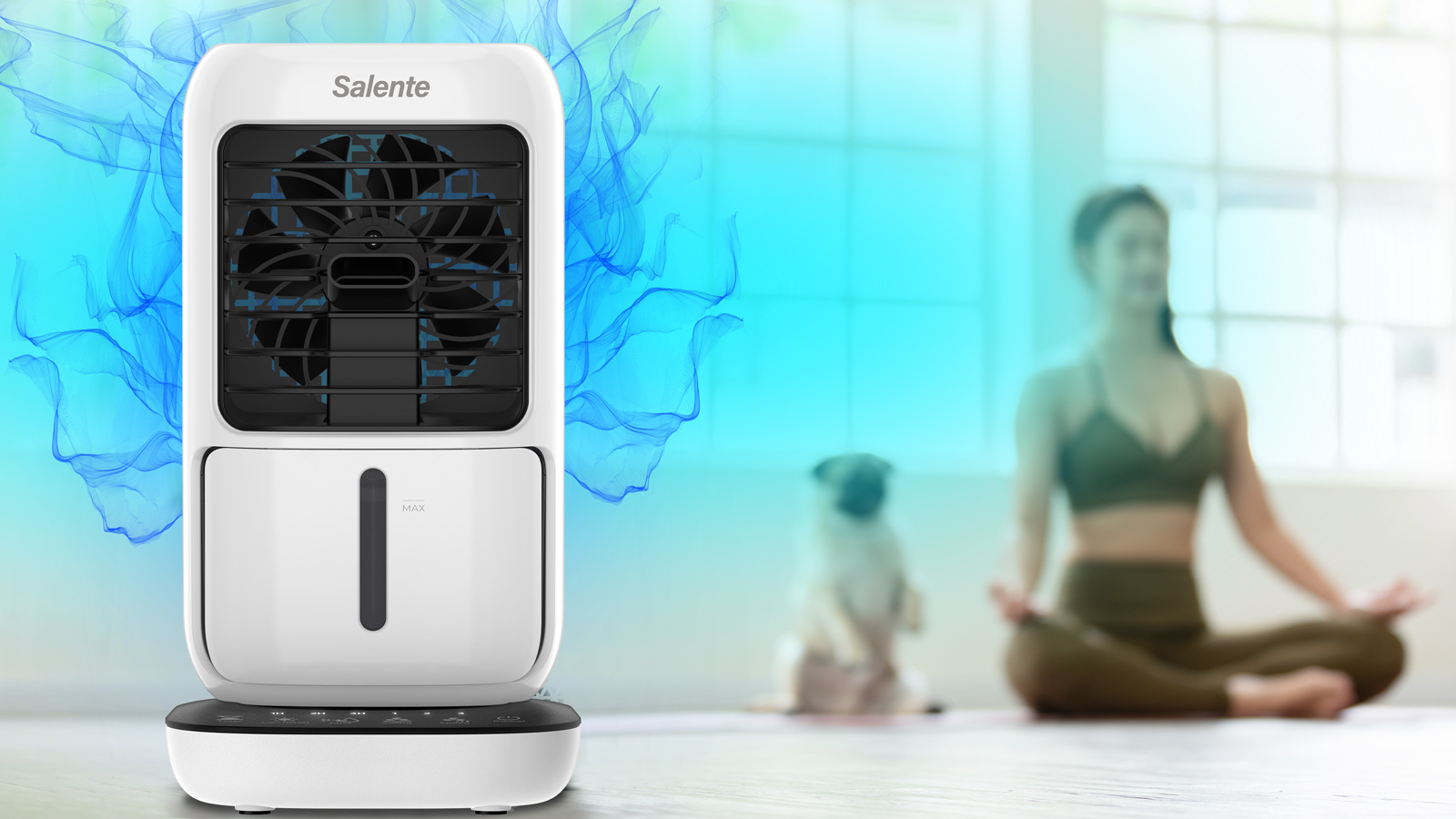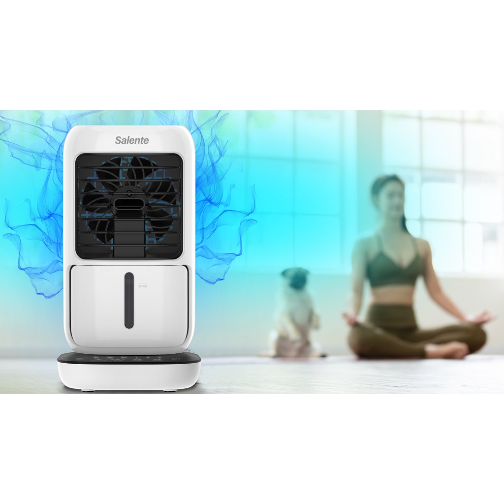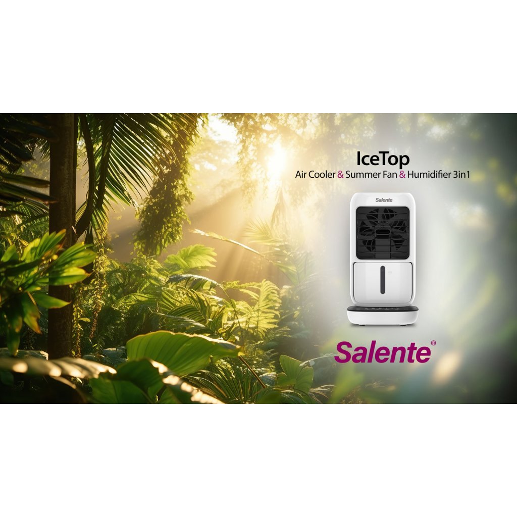 The Salente IceTop multifunctional device acts as a small desktop air cooler that makes work and privacy more comfortable on hot summer days or in warm rooms without air conditioning. At the same time, it also acts as a humidifier and does not dry out the air during its operation as is the case with standard air conditioners. When operating without a filled water tank, it performs the function of a classic desktop summer fan. It can run for 6 hours on a single filling of the water tank.