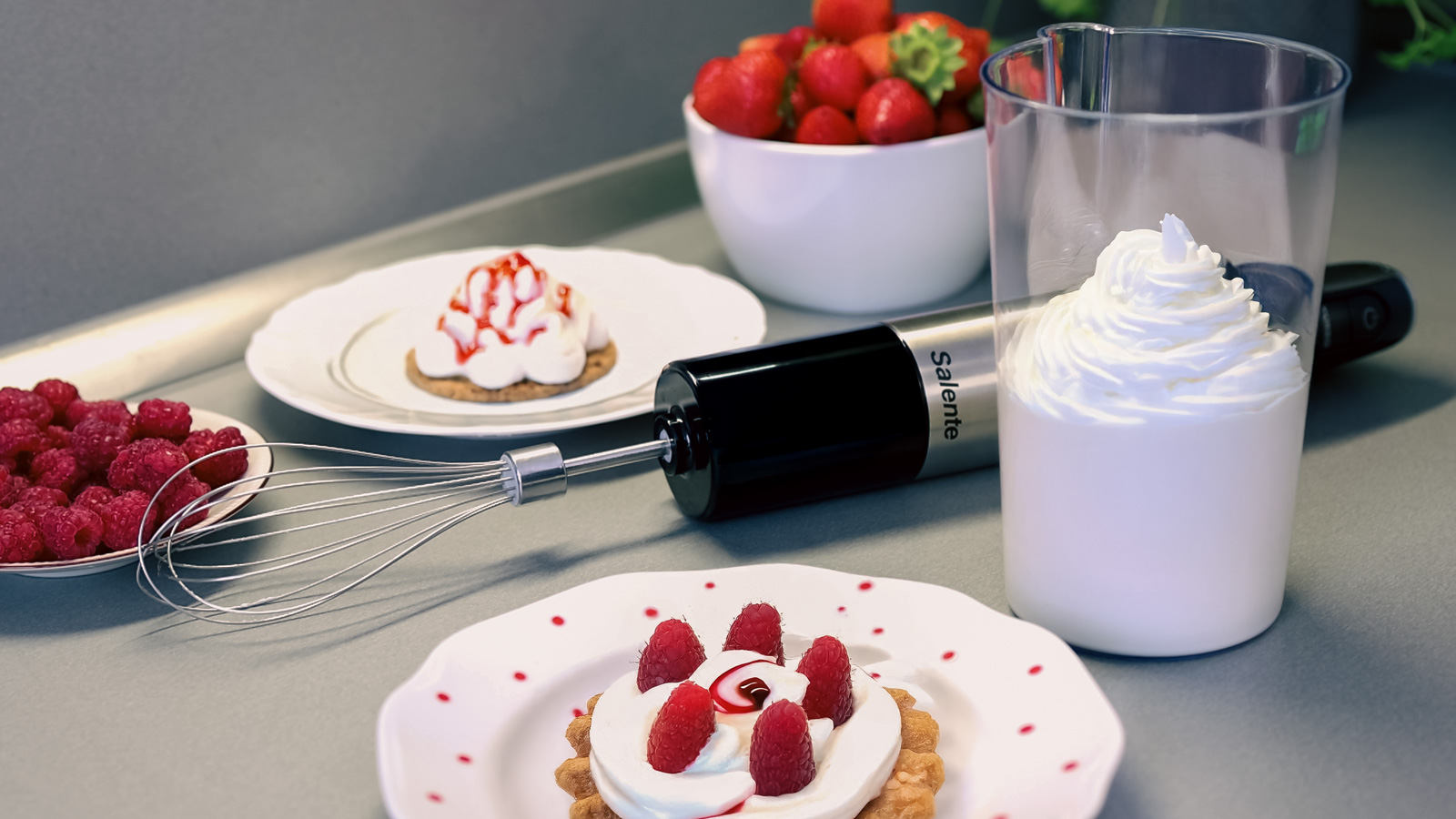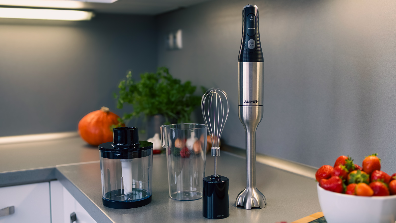 Imagine having a magician at your fingertips for cooking that can turn your kitchen into a professional culinary studio on command. Here it is. It is called Salente Mixxo and it is a multifunctional hand blender with a 1200W motor that easily handles three key functions. It mixes ingredients for everything from smooth soups to smoothies to sauces. It can whip airy creams, doughs and even egg whites. And it can also handle chopping meat, hard pastries or even nuts.
