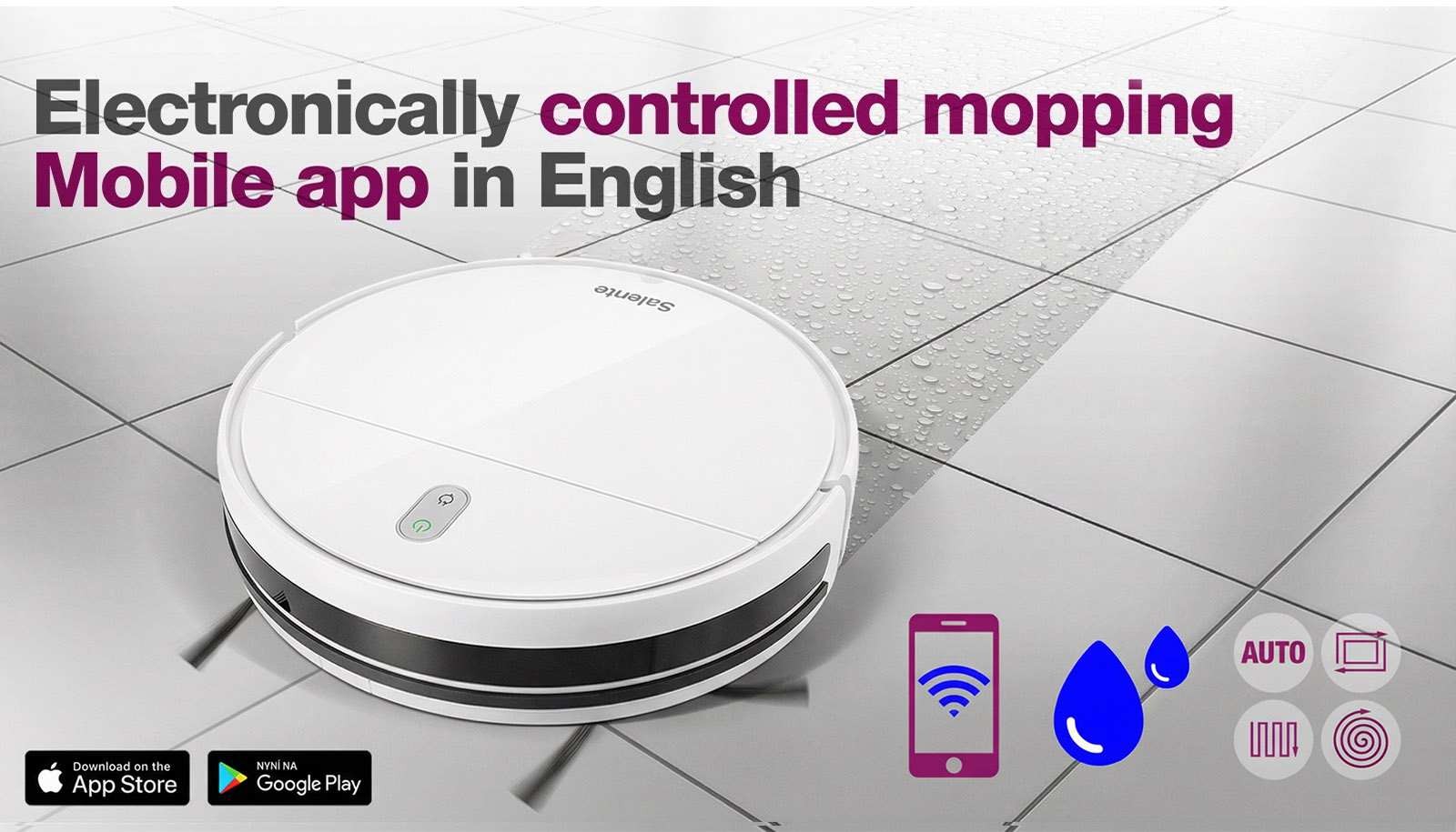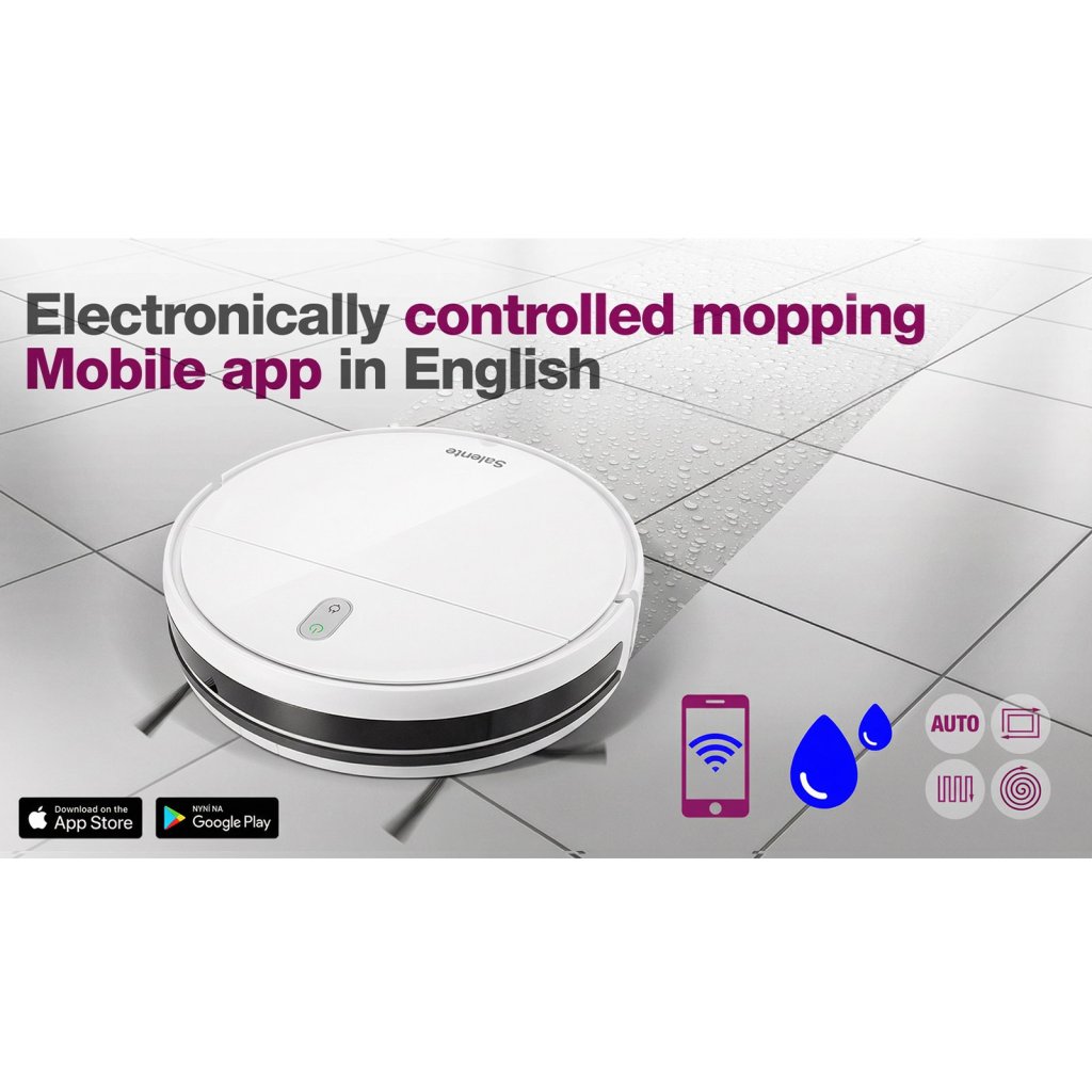 The Salente R2 vacuum cleaner, with electronically controlled water dosing, vacuum cleans and mops your entire flat before recharging itself automatically. You can control your vacuum cleaner through your mobile app in English, it offers four modes of cleaning, and has a top-quality HEPA filter.