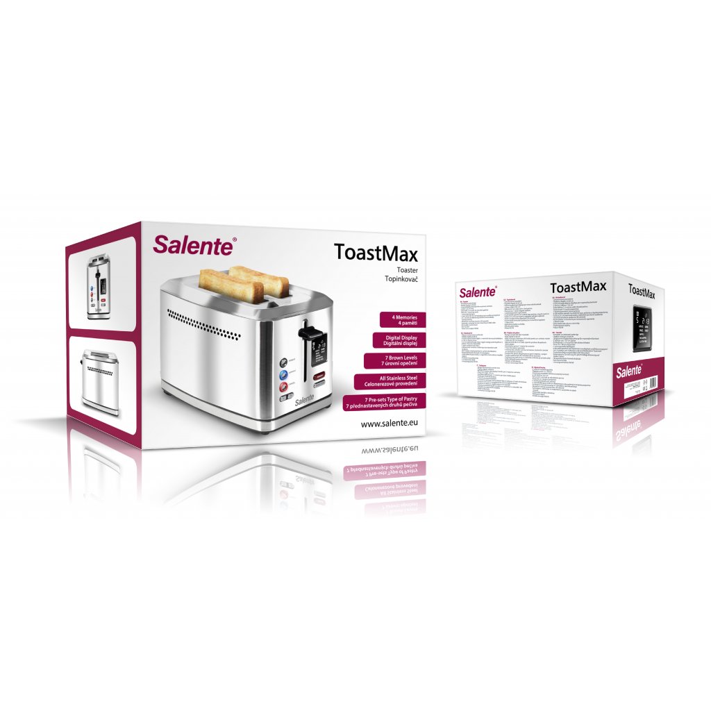 With the Salente ToastMax toaster, you can solve one of the most pressing issues of competing products once and for all – are you also bothered that the first toast is less toasted, the next more, and the third already burnt? Traditional toasters cannot adjust the toasting time based on how hot the heating coils inside the appliance are. With a traditional toaster, you set the toasting level, which is determined by a precisely set toasting time – and this time remains the same whether you are toasting the first two slices or the next ones. Thus, the last slices will be more or less burnt, while only the first ones will be to your liking. The Salente ToastMax toaster takes this into account, and thanks to the intelligent "FixBake" function, it automatically adjusts the toasting time based on how many sets of toasts you have toasted in succession. This eliminates the fact that the heating coils are cold when first turned on and need more time to toast the bread than when toasting the second and third sets, when the coils are already hot and need less time to achieve the desired level of toasting. In this way, the toaster can prepare 6 slices with the same level of toasting.
